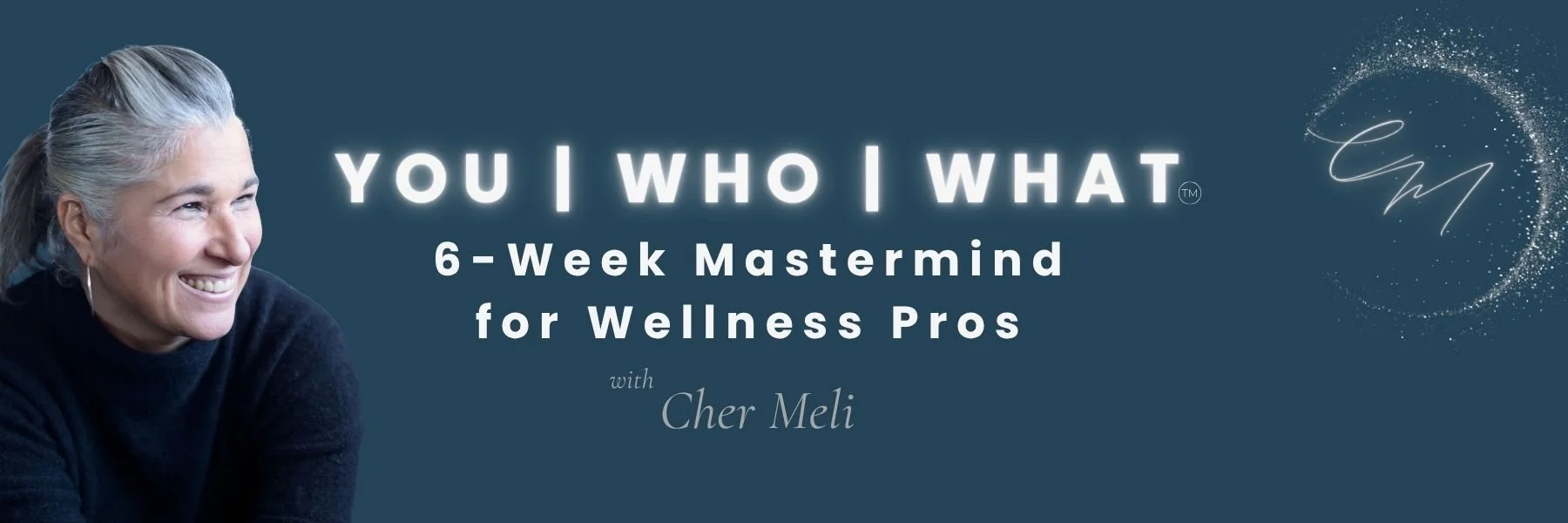 The YOU | WHO | WHAT workshop is the program Cher wishes had existed at the start of her own business journey. Built directly from her pains and successes, it offers wellness professionals the essential clarity and foundation they need before scaling their business, their reach, and their impact.